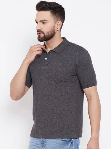 Mens Cotton Half Sleeves Grey Polo T Shirt?