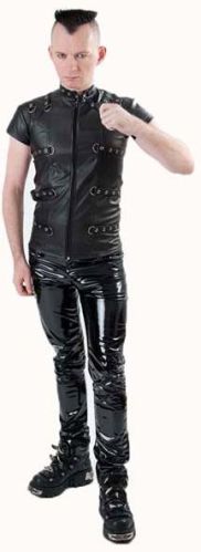 We bring forth an exclusive array of Men’s Nightmetal Tops. The company stands tall among the reputed Manufacturers, Suppliers and Exporters of Men’s Nightmetal Tops from UK. Our Nightmetal Tops come with gloss PVC front and Lycra black top. The Nightmetal Tops we make available are 28 inches (71cm) in length and comes with O ring strap and chain detail on the front. Size Available : XS -XXL