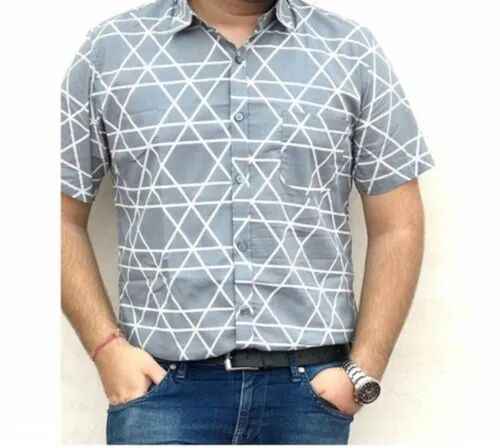 Collar Neck Mens Printed Shirts, Color : Assorted