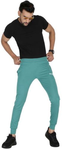 Mens Sea-Green Lycra Solid Track Pant With Grip?