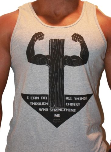 This shirt was created by my teenage daughter during a class assignment. Living in a faith and fitness driven household, she thought of this image during her art class. It just made so much sense to me I could not resist to bring it to a reality. There is strength in the cross! The cross signifies Christ ultimate sacrifice for all of man, through him we can be empowered and have the strength to persevere. Those huge-yoked arms on the cross signify that the cross is strong, it gives you strength, and its meaning stands firm.