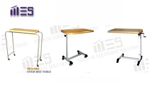We are offering mes hospital overbed table. abs top in the size of 33 x 18 inches (lb) with height adjustment options of : pneumatic gas spring , gear handle, side knob crca steel tubular frame, mounted on 50 mm castors, pre-treated & epoxy powder coated for scratch proof finish, standard : iso, ce , compliant to iec / bis standards