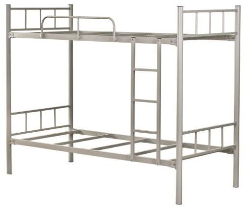 We are offering jq metal bunk bed 4. item no:jqr-018 normal size:l2020*w920*h1600(mm) leg dia:50mm round tube main beam :25*50 square tube branch tube:25*25 square tube available colors:black/ white/gray/silver/customized material:iron tube packing:export carton moq:50sets supply capability:30000sets per month delivery time:30 days after deposit trade term:exw/fob customized size acceptable production process: 1, accessories cold-pressing molding; 2, co2 protection welding; 3, phosphating to oil derusting; 4, high-pressure electrostatic spray; 5, high temperature baking.