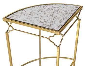 Metal plant stand with a stained-glass top. Versatile piece that can be used alone or can be made to Demilune or full circle. Perfect for halls and lounges. Its gold antiqued finish gives any space a touch of class and glamour.
