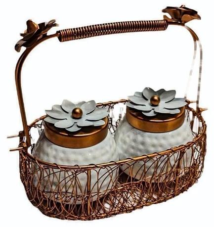 White Copper Iron Metal Wire Gift Baskets, Shape : Circular