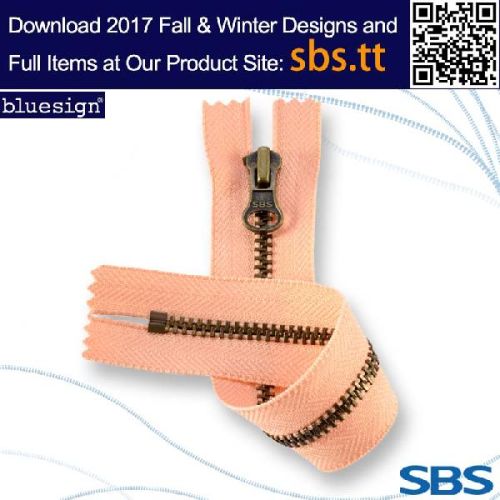 Sbs provides many kinds of metal zippers in different materials, such as brass, copper,etc. The mainstream colors in the market are also available, for example, champaign gold.