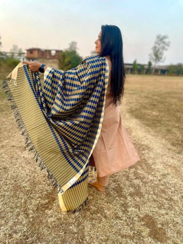 Metallic Designer Checks Dupatta, Technics : Hand Woven Techniques