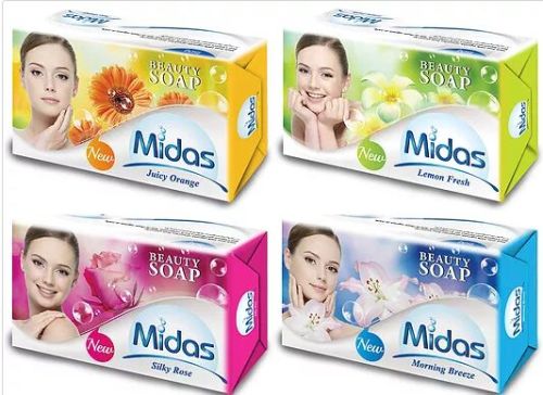 We are the manufacturer this High Quality Beauty Soap, Midas. Made from the best raw quality. Midas Soap offers the best quality with the most reasonable price. Variants: - Juicy Orange - Morning Breeze - Silky Rose - Lemon Fresh
