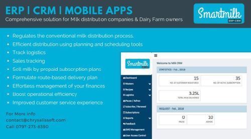 Smartmilk is one of a kind cloud based solution for the milk businesses and its customers. It helps the milk distribution business connect with the customer and give the power of managing their milk subscription. The Smartmilk ERP, CRM & Mobile Apps offer comprehensive features to the milk distribution companies or dairy farms owners to manage customer subscriptions, logistics, analyze data and much more.