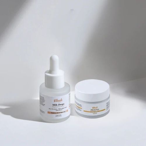 Milk Face Combo includes Milk Mud Mask & Milk Drops Brightening Serum. Milk Mud Mask removes tan and promotes instant brightness & glow to your face. Milk Drops Brightening Serum tackles dark spots & pigmentation, boosts hydration & brightens skin. An unbeatable duo to achieve tan-free, hydrated & brighter skin. De-tans & Brightens Fades Dark Spots & Pigmentation Brightens Skin Enhances Glow