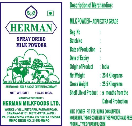 We are offering full cream milk powder concentrated by evaporator and then spray dried. Physical composition color white to creamy taste/odor clean and pleasant chemicalcomposition moisture (%) 3.0 max. Fat (%) 26.0 min. Insolubility index (ml) 1.0 max scorched particles disc a – b protein (nx 3.38) (%) >25.0 titrable acidity as lactic acid per 100g powder 1.0 max biological analysis tpc (cfu/gm) 10,000 max coliform (cfu/gm) absent e.coli (cfu/gm) absent staphylococcus aureus (cfu/gm) absent salmonella (cfu/gm) absent yeast and moulds cfu/gm 10 max