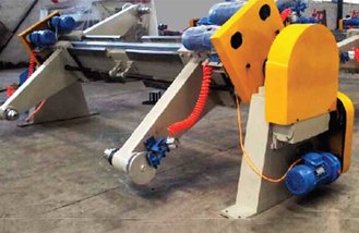Motorized lifting & lowering: clamping releasing, right-left adjustment.Double rotary shafts with four arms. Effective width: 1200 to 2200mm Maximum paper roll diameter: 1500mm.