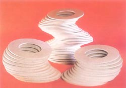 The heat resistant discs are made from materials containing a higher percentage and a small quantity of organic binder, to withstand the application temperature exceeding 1000C.