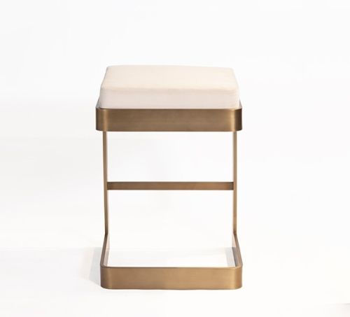 This low heighten bar stool is the life of any bar area. Its comfortable seat with low foot area allows you to relax while enjoying a glass of with friends and family. It can also be used as kitchen stool. Fully padded and upholsteryed in warm beige velvet with antique brass legs provides supreme comfort and style.