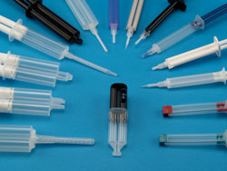 All plastic, 2cc x 2cc and 7cc x 7cc (1:1 ratio) capacities available Anti-crossover separator reduces AB contamination Auto air venting for easy filling Re-sealable, no-leak, position oriented cap Separate sealplunger rod configurations available Micro static mixers in 2mm, 3mm, and 4.6mm diameters with variable length element configurations and needle or blunt orifice Clear or custom color polypropylene or nylon barrels.