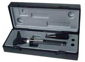 We are offering mini fiber optic otoscope. Cat no. Ibloto-230 fiberoptic for cool, obstruction free light transmission otoscope head made from polyamide impact resistant space age thermoplastic swiveling viewing window with 2.5x magnification. Otoscope set complete with four polypropylene reusable specula, size: 2.5, 3, 4 and