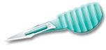 Mini scalpel, also known as thumb scalpel, consists of a small plastic handle fitted with a surgical blade made of stainless steel of Size 10, 11 or 15. A clear plastic guard covers the blade. This provides protection to the edge, prevents damage to the packaging and allows safe disposal after use. Mini scalpels are ideal for use in various kits. Mini scalpels are sold in bulk pack with 100 scalpels to a pouch. Features ABS plastic handle fitted with a stainless steel blade. Protected with guard, the scalpel is ideal for kits