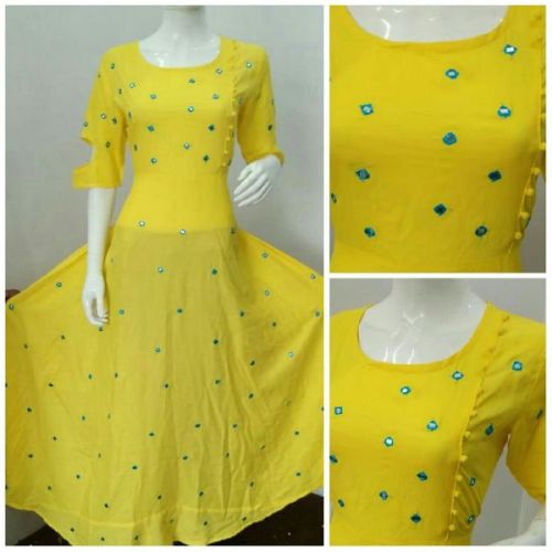 👇 new updated 👇 🤳🤳🤳🤳selfi with mirror work 🤳🤳🤳🤳 size= m to xxl length= 54 fabric=rayon with mirror        work.
