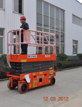 We are offering mobile scissor lift table. platform height 6.1m working height 8.1m platform extention 0.9m payload 250kg ac power options available for: 4*260ah battery platform ac power caution light conductive strip leakage protection