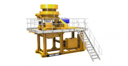 Contact SupplierTrio® MC Series Modular Cone Crushers can be used as standalone secondary and tertiary comminution stations equipped with motors, drives and guards. All Trio® cone crushers incorporate reliable user friendly features including a threaded bowl with hydraulic gear drive allowing precision adjustment. A fully integrated hydraulic console provides push button control for clamping, adjustment and tramp relief. Trio® self-contained lubrication skid utilizes climate controlled oil and an integrated PLC with automatic shutdown sensors for out of tolerance conditions. Precision machined bronze bushings with additional oil porting provide superior load carrying ability in harsh environments. Our spiral cut bevel gear set uses induction hardened gears and carburized pinions to ensure smooth, efficient horsepower transmission. The cast high strength alloy & fabricated mainframes are heat treated and stress relieved.