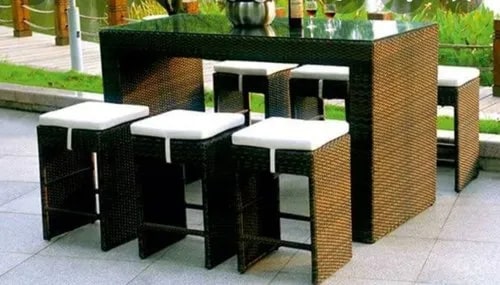 Polished Aluminium Garden Dining Table Set, Color : Brown