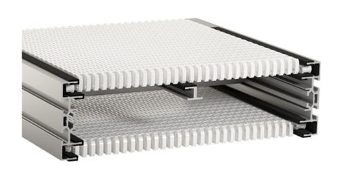 The modular wide belt conveyor is designed for applications that handle products which call for the stable support of a wide chain such as: Secondary packaging of food and hygiene products Pouches Soft plastic bags Shrink wrapped products Card board boxes Plastic containers Highly suitable when the production requires horizontal transport between case packers, cartoners, in-case fillers, shrinkstretch wrappers or bulk packers.