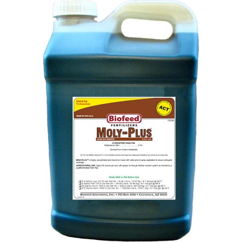 Contains Liquid Molybdenum in a solution of ACT® which supports vital biochemical reactions in the plant. Molybdenum is required for three primary biochemical functions: 1. converts nitrates (NO3) into amino acids, 2. supports the symbiotic nitrogen fixing bacteria in legumes and 3. essential to the conversion of inorganic phosphorus into organic forms in the plant for enhanced translocation to plant cells.