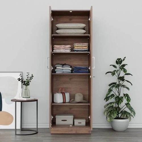 If you want safe storage space, this wooden wardrobe will be a great addition to your bedroom with storage and drawers. It is made from solid wood in a neutral finish that goes well with any color and features rounded cabinets and drawer handles. The bottom has two drawers for storing shoes or anything you want to get off the floor and hide. For your safety, this cabinet has an anti-tip device so you can secure it to the wall.