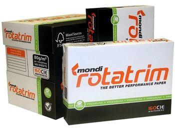 Mondi Rotatrim copy paper 80/75/70 GSM High quality paper renowned for its excellent performance and environmental friendly attributes is suitable for photocopies, printing with inkjet and laser printers and offset preprints. Specification : Brand: Mondi Rotatrim (Original) Size: A4 (210mm x 297mm) Substance: 80gsm Brightness: 102-104% above Color: white Whiteness: CIE167 Grade: All purpose Premium Paper Sheet in Ream: 500 Roughness: 140ml/Min Opacity: