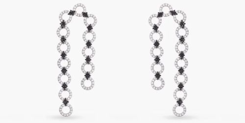 Introducing our elegant silver drop earrings, featuring a delicate line of white CZ-studded circles and black CZ-studded rhombus shapes. This graceful arrangement creates a refined monochrome pattern, offering a subtle yet sophisticated look that effortlessly enhances any outfit.Care Tips: Gold-plated silver tarnishes over time, particularly in humid conditions or with direct contact with perfumes, sanitizers, and other substances. To maintain its luster for the longest time, avoid such direct contact and store the jewelry in a zip-lock bag or its original box.