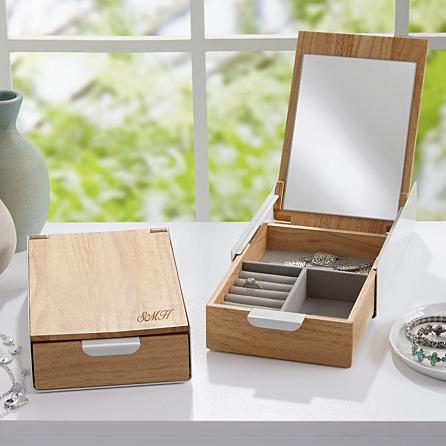Multiple compartments for jewelry storage and padded base to protect surfaces.