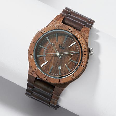 Made from hypoallergenic wood, this striking watch makes a unique conversation piece. It combines one-of-a-kind style with eco-friendly features. In fact, for every watch sold, a tree is planted to help decrease deforestation. 100% natural wood. Hypoallergenic and completely free of toxic chemicals. Miyota quartz movement. Hardened, scratch-proof mineral glass. Adjusts to fit any wrist. Band measures 7-12”L with 1-12” dia. face. Personalize the back with any 3 letter monogram or date. Item cannot be gift boxed. Item