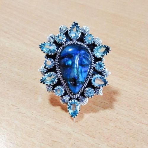 Metal:- 925 Sterling Silver Gemstone: Natural Labradorite - Carved stone Gemstone Shape:-Pear Head Size-51*32 mm Stone Size- 27*17 mm Finishing:- Shiny Silver