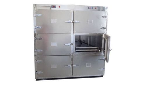 Mortuary chamber Standard hinged door with Double gasket seal between the door and the cabinet increases system efficiency. (SIDE OPENING or FRONT OPENING AS REQUIRED).Observation Windows & Wall Bumper.