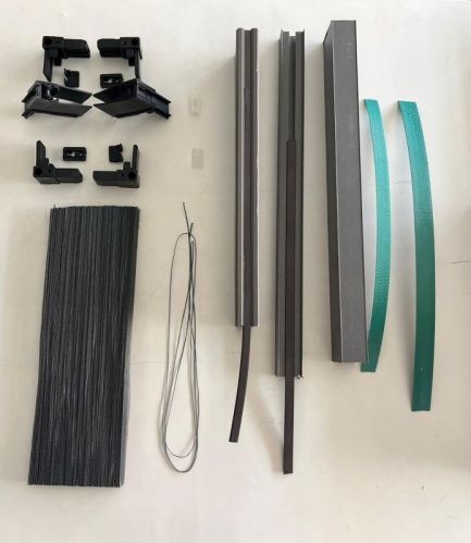 1- section , 4.8 top , 2.5 bottom , corner , side section. Handel , Polyester mesh .