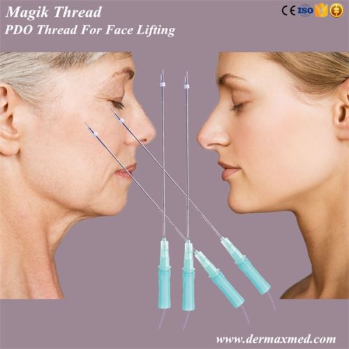 Contact SupplierAs we age, the effects of gravity become more noticeable on our faces, especially as our facial support structure weakens and we lose facial fat. Korean pdo thread lift is one the most effective ways to lift the loose skin without surgery. Korean pdo thread is an effective nonsurgical option that can lift and contour and suspend the sagging tissues on the face, neck and the body. Pdo thread korea especially suit for those that need only minimal to moderate rejuvenation or for those that do not wish to undergo surgical intervention. Application magik lift series are made of  pdo (polydioxanone), it is a thread with no cones, thus no damage to the tissue. This is the same thread used in cardiac and other surgeries as sutures, and thus it is very safe. Aging causes the skin tissue to be thin because the collagen and elastin fibre`s break down, which results in sagging skin, deep creases, folds and wrinkles. Pdo thread reverses the effects of aging. Threads are implanted into the sub-dermal skin and stimulate the production of collagen and the skin becomes firmer, elastic and moisturised. The thread dissolves itself in couple of months but the effect last for 12- 18 months. The thread can be applied to anywhere on the body, such as a flabby face, cheeks, eyebrows, to prevent eye bags, sagging neck skin, fine lines around cheeks, angle around the mouth, laugh lines, forearm and abdomen, smokers lines and lifting of breast. Indications * horizontal and vertical forehead wrinkle.