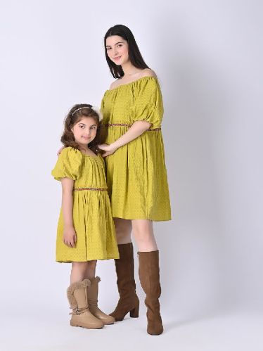 Contact SupplierT3 Alice Mini Dress is made from cotton self-weaved jacquard featuring in balloon sleeves, elasticated neckline can be wear as a Bardot, empire cutline, straight skirt with small frill and jacquard tape going all-round looks like a belt. We love this dress, it provides a slim look.
