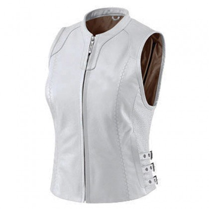 We are offering angel motorcycle leather vest,beautiful design and perfect fitting,waist at adjustable loops both side,fine white color,front and back at side stretch panels both side,front and back at arm hole edging,front at long zipper. Genuine high quality sheep leather 0.9 -1.0 mm
