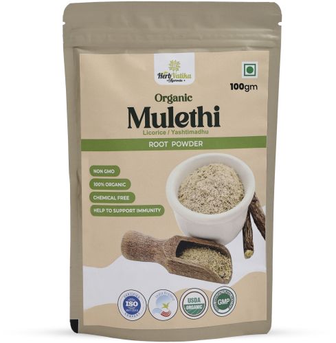Mulethi Powder, also known as Licorice root powder, is a traditional remedy used in Ayurveda for centuries. It is an effective solution for respiratory issues, soothing sore throats, and reducing cough. This powder also enhances digestion and promotes skin health, offering a radiant and blemish-free appearance. Mulethi is widely used in herbal teas, skincare masks, and health supplements for its therapeutic benefits.