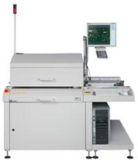 The inline system for bottom-side inspection of printed circuit boards has a multi-LED illuminated scanner unit as well as a patented special lens which generates a parallax free picture. The ASYS transport module has a system length of 1500 mm 1590 mm (two segments with 1000 mm 1090 mm and 500 mm). The system includes one modus system computer with the proprietary modu.