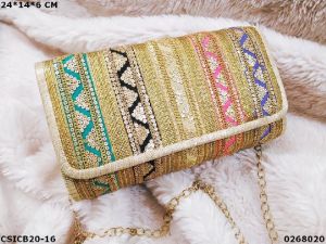 Contact SupplierThis beautiful clutch bag is made from raw silk, in addition it makes feel special to every women. The sequins work with these colorful fabric stripes on the surface of the bag gives it a perfect ethnic look to the clutch bag. This Clutch bag go well with all Indian outfits. This Clutch Bag adding a glamorous and beautiful touch for your day or night look and have a very unique and ethnic style, combined with modern, stylish and fashionable design.