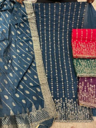 Dola Silk Unstitched Suit Material, Color : Multicolor