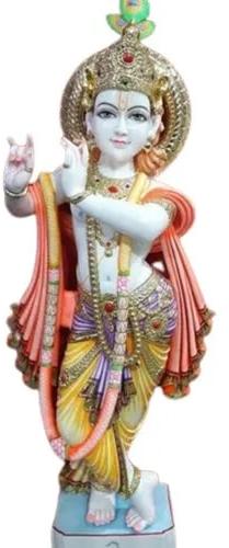 White Marble Krishna Statue, For Religious Purpose, Pattern : Painted