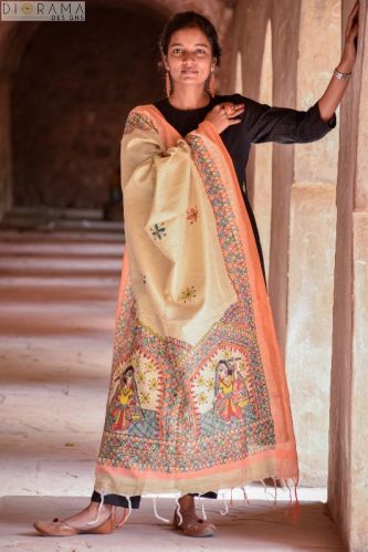 Madhubani Hand Painted Dupatta, Color : Multicolored