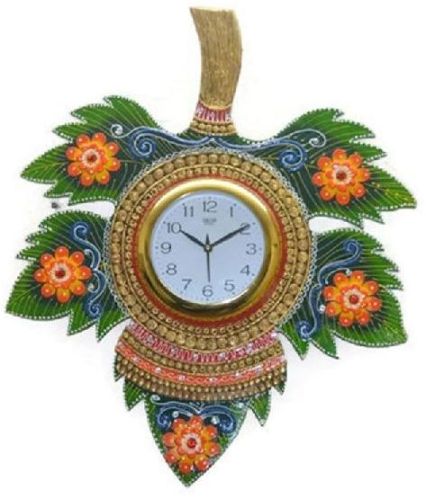 Handmade Wooden Leaves Shaped Wall Clock, Color : Muticolor