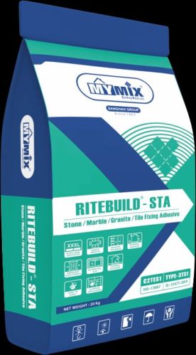 RITEBUILD® STA is cementitious, thinset, High Polymer modified, single component heavy-duty adhesive for internal and external floor and wall applications. It has excellent adhesion property on concrete, plastered surface and other substrates. Its high flexibility and superior bond strength makes it best choice for vertical stone cladding. White colour adhesive adds to aesthetic look especially for light colour stones.