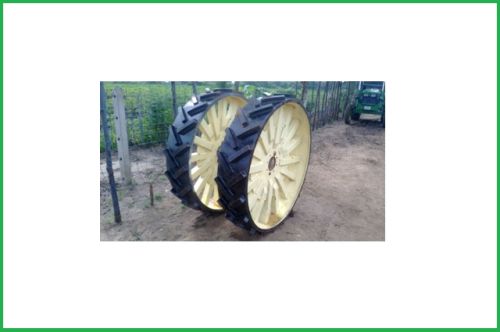 During tilling process, the rubber button tyres of the tractor will become barren and tear shortly as well as consumption of diesel will be high due to rotation of the wheels at the same place in the field without gripping and we should replace the rubber tyres every year. Nadakattin iron wheels buttons will not wear and tear at least for 20 years due to this will not change wheels every year and we can save valuable diesel. This is a boon to farmer if he adopts these iron wheels to tractor. Actually this is made especially for farm