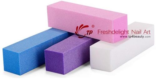 Description: 4 way Block Buffers Shinning nail polishing block - Color: white, pink, blue, purple - Grit: 100180 - Package: 10pcsbag 1000pcscarton - Sides: 4sides - Logo: accept logo printing. - Can be used to file natural nails, false nails, nail extensions, etc. - Perfect for finger care, woodworking, and salon usage