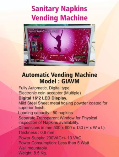 Mild Steel Automatic Napkin Vending Machine, Color : Red