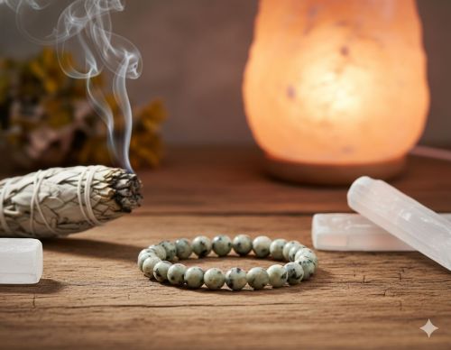 This soothing Kiwi Jasper Bracelet is a best-seller for stress relief retailers, meditation centers, and metaphysical wholesalers seeking authentic, high-demand Emotional Healing Jewelry from a reliable Indian supplier.